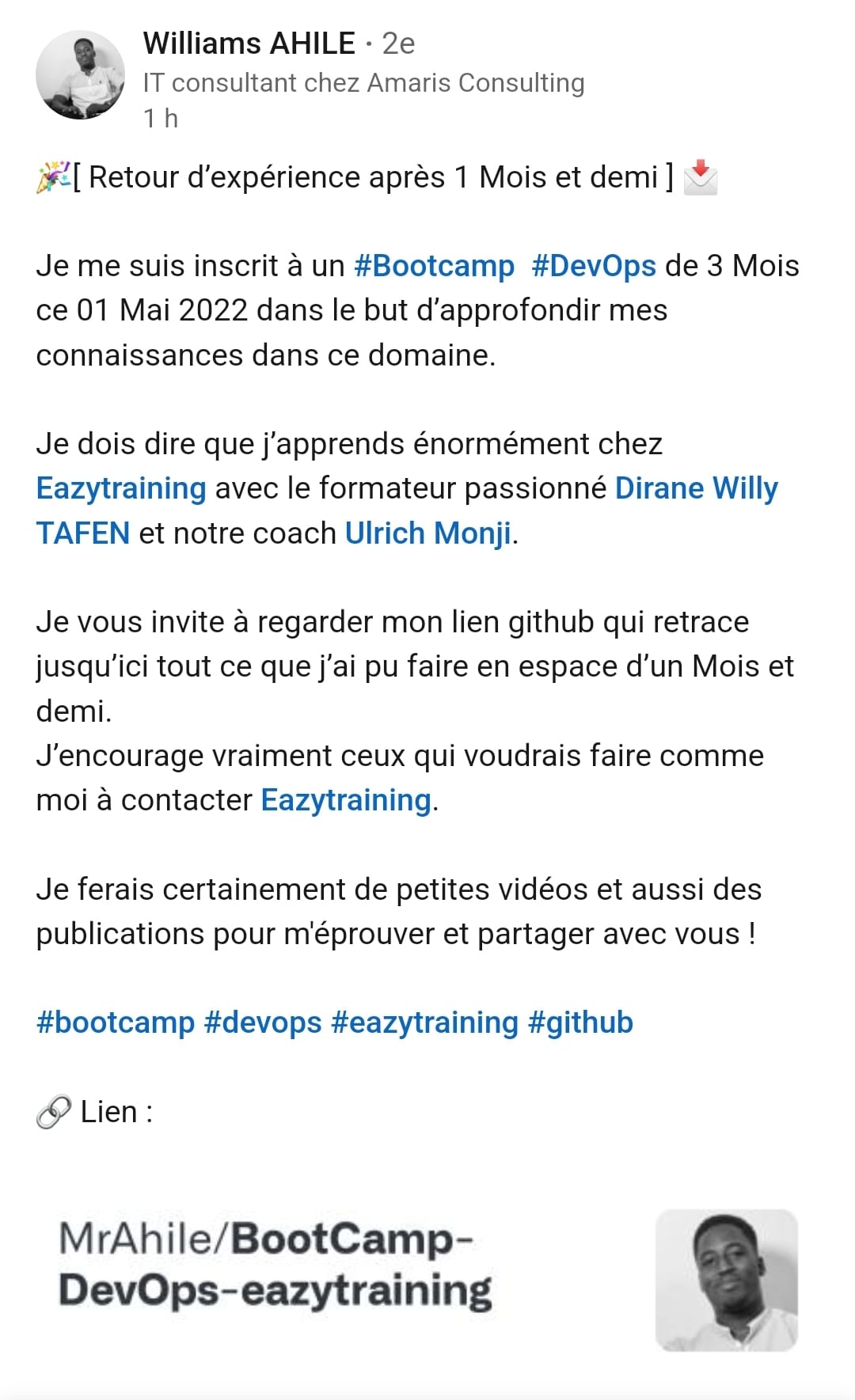 Témoignage en une semaine seulement de formation