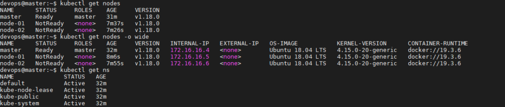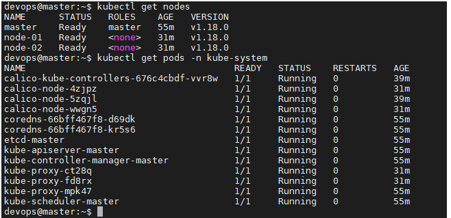 devops@master:~$ kubectl apply -f https://docs.projectcalico.org/manifests/calico.yaml