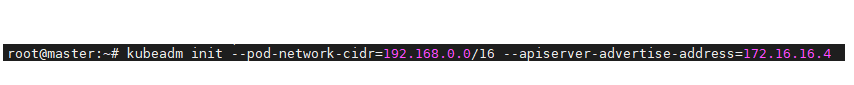 **pour le 2ème paramètre « –apiserver-advertise-address=ip-address » (ici il faut mettre l’@IP du controle plane qui est le « master » –> 172.16.16.4