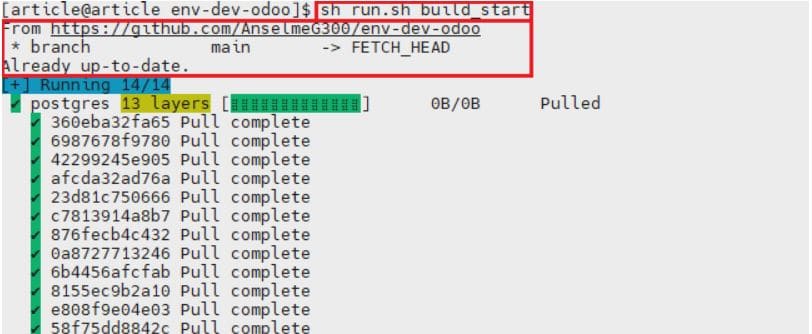 - Mise à jour du code et premier démarrage de notre environnement avec sh run.sh build_start