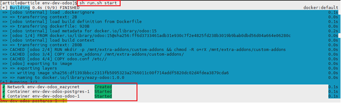 Démarrage de notre environnement sans mettre à jour le code avec sh run.sh start