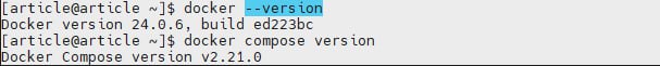 • Vérifiez que la version retournée par Docker est 24.0.6 et vérifier que Docker Compose est aussi installé