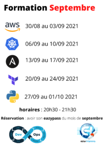Le eazypass vous donnera accès aux sessions de live training (avec présence du formateur) suivantes pour le mois de septembre 2021
